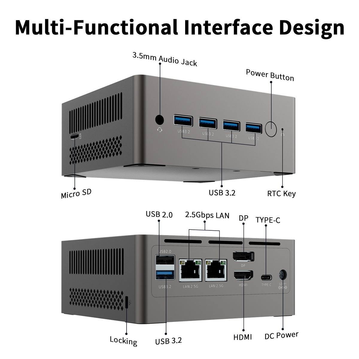MORE PORTS FOR MORE OPTIONS: This micro pc comes with 5 x USB3.2, 1 x USB2.0, 1 x HDMI2.0, 1 x DP 1.4, 1 x Type-C(full function), 2 x 2.5G RJ-45 Ethernet ports, 1 x Audio jack, 1 x DC jack, 1 x Memory card reader for greater visibility of your tasks, even across multiple applications